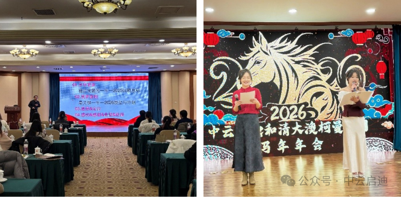 “岁序更新、逐梦新程”中云启迪 2026 年年会在 2026 年 1 月 1 日至 3 日顺 利召开。在辞旧迎新的美好时刻,中云启迪(科技)有限公司利用元旦假期于廊坊香河天下第一城成功举办了 2026 年年会及教研会。公司干部员工 60 余人欢聚 一堂,共同回顾过去一年的辉煌成就,展望未来的发展蓝图;会上大家还充分交流 25 年秋季小教研成果,并对先进个人和团队进行了表彰与奖励,员工们还全员参与、表演了丰富多彩的文艺节目,以及晚宴餐聚、游戏等系列活动,有力促进 了公司年会目标的实现。作为年会的先声,西语教研会于 2 日上午率先拉开帷幕。教研会在前期经过 充分评比,从高三小教研活动三个组中遴选出来一等奖 4 名,二等奖 5 名,高一等奖获得者张梓伊老师和闫禹潼老师做了精彩的小教研示范课展示;随后高一、高 二一等奖获得者雷森、曾林静、庄佩慈和二等奖获得者代表宋晓宇、范佳佳向大 会汇报了各自的小教研成果。她们精彩的课堂及汇报获得了与会老师一致好评。 展示及小教研汇报后,还举行了高三圆桌论坛、及高一高二圆桌论坛活动,通过 “嘉宾”老师主持、其他老师积极参与讨论等方式,使得教研团队和一线老师们更好地面对面交流教学过程中遇到的各种问题及解决方案。一整个上午的教研会不知不觉间就结束了,参会老师们都表示意犹未尽。教研管理团队后续将根据一 线老师的需求,持续举办线上教研讨论与论坛活动,更好地发挥我们学校多、优秀教师多的优势;同时,我们将进一步总结近两年来成功开展的小教研活动的经验、更好地将小教研活动持续推进下去并取得更加丰硕的实战成果;一线教师的小教研活动、结合专职教研团队的系统教研成果,使得所有老师都可以获得长足的进步、保证各个学校的成绩都可以满意,实现皆大欢喜、花开满园。获得小教研活动一等奖的老师、中间从左到右依次为:庄佩慈、张梓伊、闫 禹潼、王鑫、李思琦、雷森、曾林静,奖金各 700 元。获得小教研活动二等奖的老师为:张含、吴春毓、张思楠、吴雪莹、马衡、 杜佳,王艺,滕文燕,宋晓宇,龚彩琼,范佳佳,奖金各 300 元。 其他二十余位老师获得了小教研活动优胜奖。 作为传帮带的杰出老教师代表,李慧、殷文昕老师获评为优秀教研小组长, 奖金各 300 元。段卓君组和张攀攀组荣获优秀教研小组称号。2 日下午,年会在喜庆与期待中正式拉开帷幕。在主持人徐朝阳和庄佩慈热 情洋溢的开幕词之后,首先介绍了与会领导和年会流程。作为年会的重要环节之 一,董事长兼总裁明天然博士首先做了主题报告,明博士首先对 2025 年的工作 进行了总结,分享了公司在西语高考、国际教育两条主线项目和其它支线项目各 个方面所取得的突出成就和进展,同时提出了 2026 年的展望与计划,并再次阐 述了公司企业文化、价值观、愿景等,并强调了管理、团队建设、合作伙伴等对 公司发展的重要意义和价值。年会的燃点在明博士宣布 2025 年公司实现营收过 1000 万元、实现扭亏为盈时爆发,并在明博士规划 3 年左右实现营收过 3000 万、 员工过 200 人、拟启动上市计划时,全场掌声雷动、气氛高涨。最后明博士宣布 公司今年设立中云救急基金、强化中云之家股权激励计划等好消息时,赢得了与会员工的广泛认可。明博士在报告最后以“感谢&感恩&希望”为主题,向公司发展过程中的合作伙伴、创始股东、各位领导、各位同事们致以衷心的感谢,感恩有他们陪伴和帮助公司一路成长,并祝愿大家新的一年里万事如意、马到成功!接下来,公司市场部负责人副总裁殷志坤、西语部负责人总裁助理段卓君、 运营管理部负责人总裁助理徐朝阳分别发言,就各自部门在过去一年中的工作进行了回顾和总结,并对新一年的工作提出计划和展望。截至 2025 年 12 月,公司西语部已累计取得教研成果 57 项,编撰内部教材 19 本(含 26 年计划出版的 3 本),并不断更新与维持我们在西语高考试题库、高考各层次教学指导案、高考天团专家巡讲干货资料研发等方面的优势。同时,教研方面已越来越精细化、多元化、科技化,公司投资研发的西语高考 AI 学习机将于 2026 年春季投入使用,将更加有助于我司在西语高考项目方面继续保持和扩大领先优势。市场方面,截至 2025 年底,已经有合作学校 31 所,在读学生 2800 余人。而且,在过去的一 年里,公司规模稳定扩大,运营管理方面正式设立了运营管理部,有效地在一线 老师管理与服务、教学环节科学规划、院校沟通、联考统筹等等方面发挥了显著 的作用;年底时我司成功发布了 2025 版西语高考项目院校合作白皮书(20 多 页),将为我们在西语高考项目与学校的规范化合作方面产生积极影响。三位核心干部的发言引起了参会老师们阵阵热烈的掌声。随后,公司高级顾问、西语泰斗、北京外国语大学常世儒教授以视频的方式 致辞。常教授首先感谢了公司和明董的邀请,对公司的理念和取得的辉煌成绩、 对年会和教研会的成功召开表示热烈的祝贺。常教授并结合自己的亲身实践、对我们的教师团队和公司的持续发展寄予了殷切希望。随后,优秀教师代表吴雪莹老师和雷森老师上台发言,分享了自己的成长和教学成果,表达了对公司、合作 学校领导、和同事们的感谢,并表示在接下来的时间里更加的积极拼搏、创造新的佳绩。精彩的讲话结束后,年度奖项