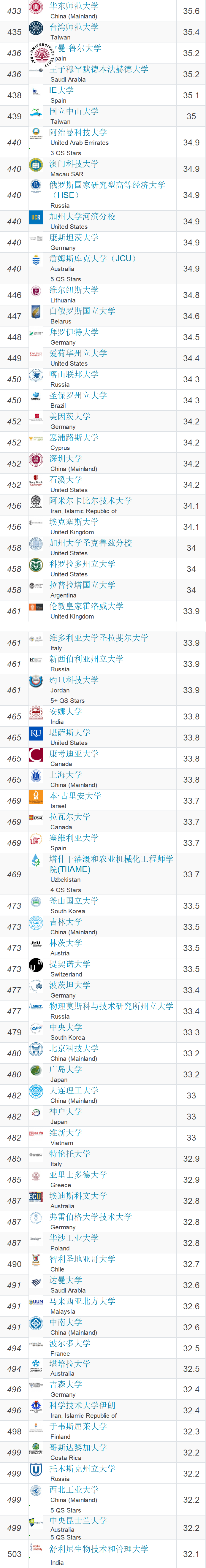 (数据来自QS官网)